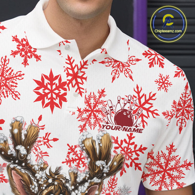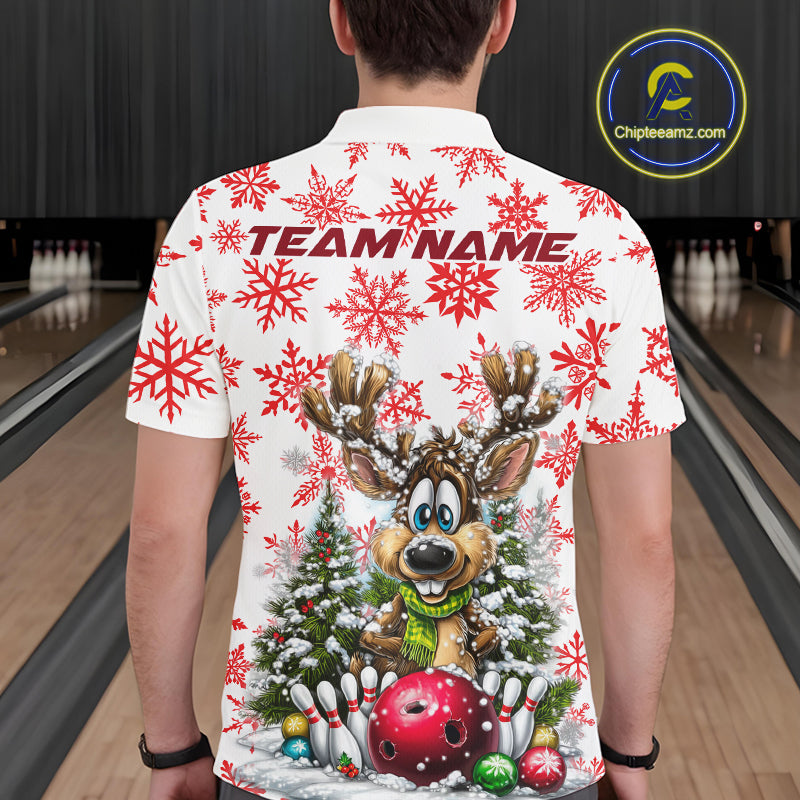 Custom Cute Funny Reindeer Christmas Bowling Men Polo Shirts, Xmas Team Bowling Shirt IPHW10113