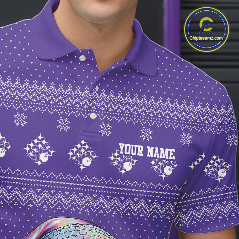 Custom Funny Santa Christmas Men Bowling Polo Shirts, Purple Xmas Bowling Team Outfit IPHW10141