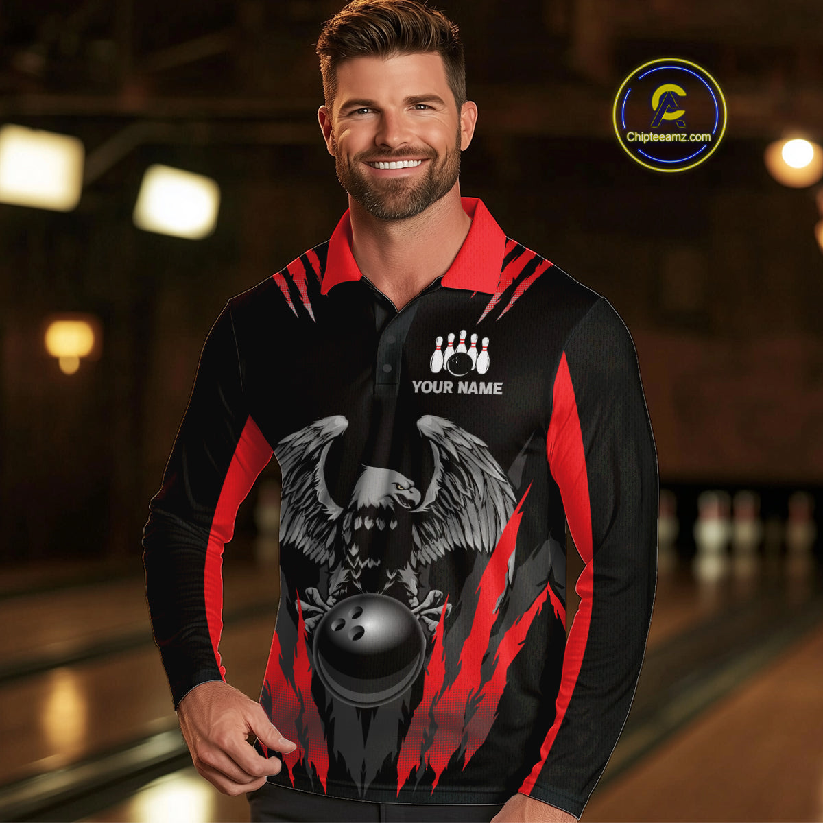Black and Red Eagle Bowling Shirts For Men Custom Eagle Bowling Team Jerseys Bowling Uniform NQS11151