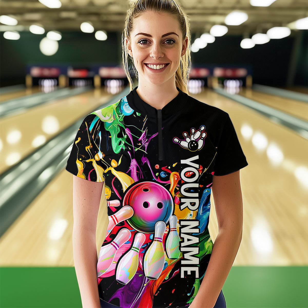 Colorful Bowling Shirt Bowling Jersey Women Personalized Bowling Team Jersey Polo & 1/4 Zip HNT33