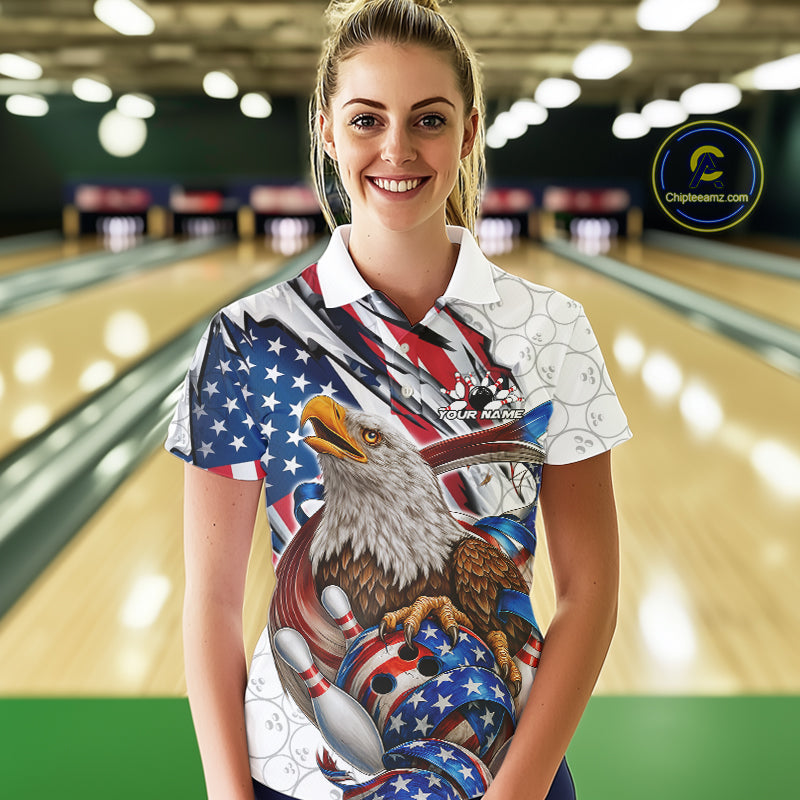 Custom Patriotic US Flag Eagle Bowling Women Shirt, USA Bowling Team League Shirt IPHW10163