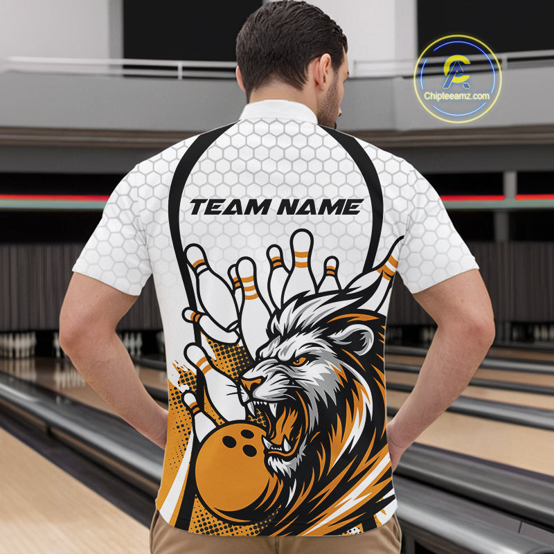 Custom Yellow Lion Bowling Men Quarter-Zip Shirt, Lion Bowling Team League Shirt IPHW10126