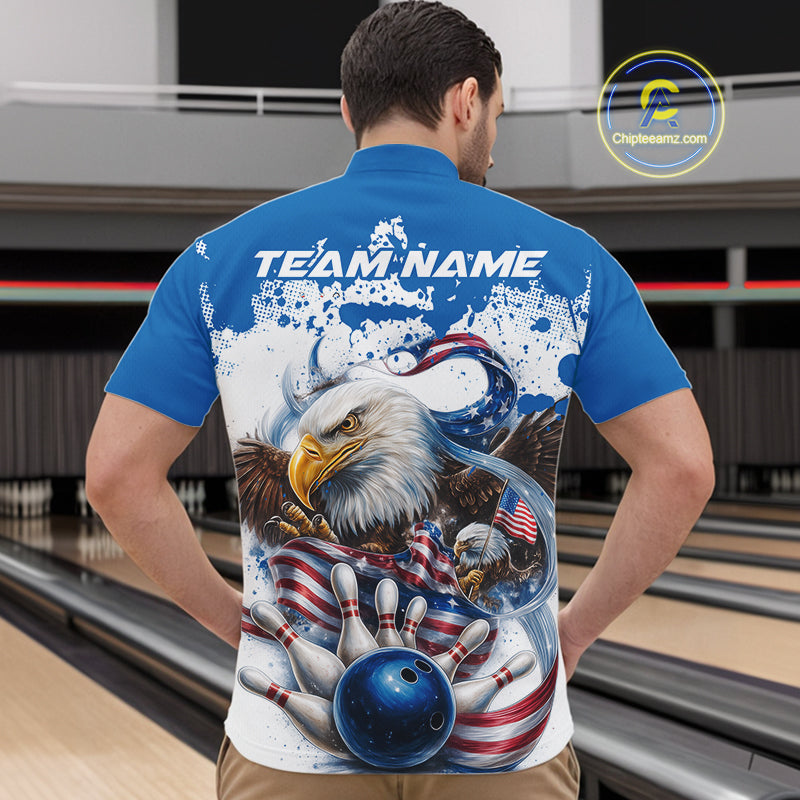 Custom Patriotic US Flag Eagle Bowling Men Shirt, USA Bowling Team League Shirt IPHW10164