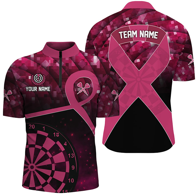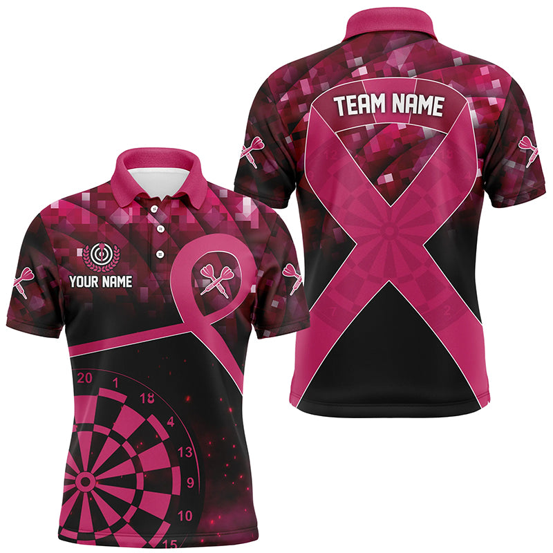 Pink Ribbon Breast Cancer Awareness Darts Shirt For Men Custom Breast Cancer Shirts For Darts Lover TDM2507