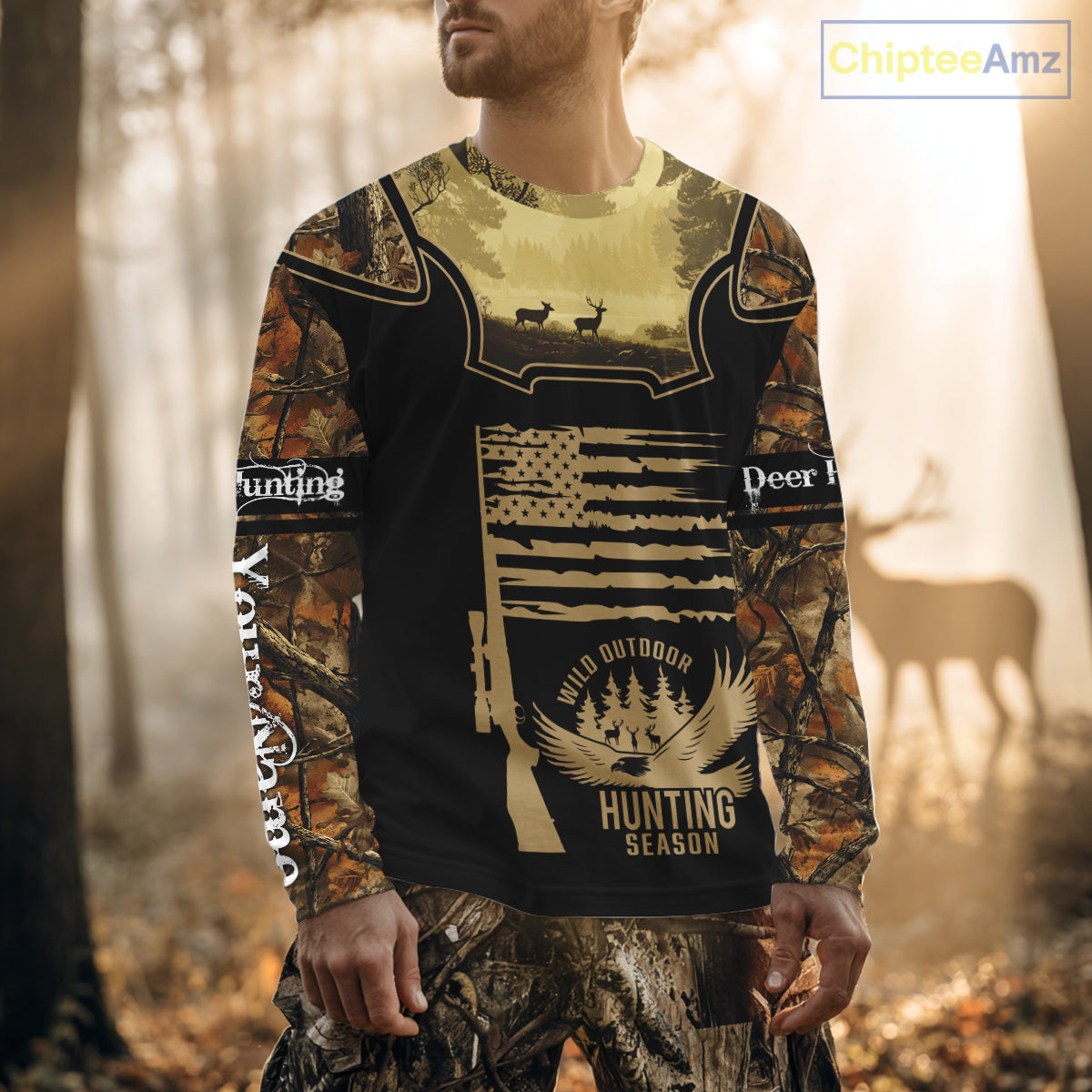 Designed for deer hunters and outdoor enthusiasts, this shirt blends style, comfort, breathable and funtionality in one. The unique hunting-inspired design can be personalized with your name, along with details like the American flag, camouflage patterns, and more - making it the perfect gift ideas for hunters during deer hunting season.ย