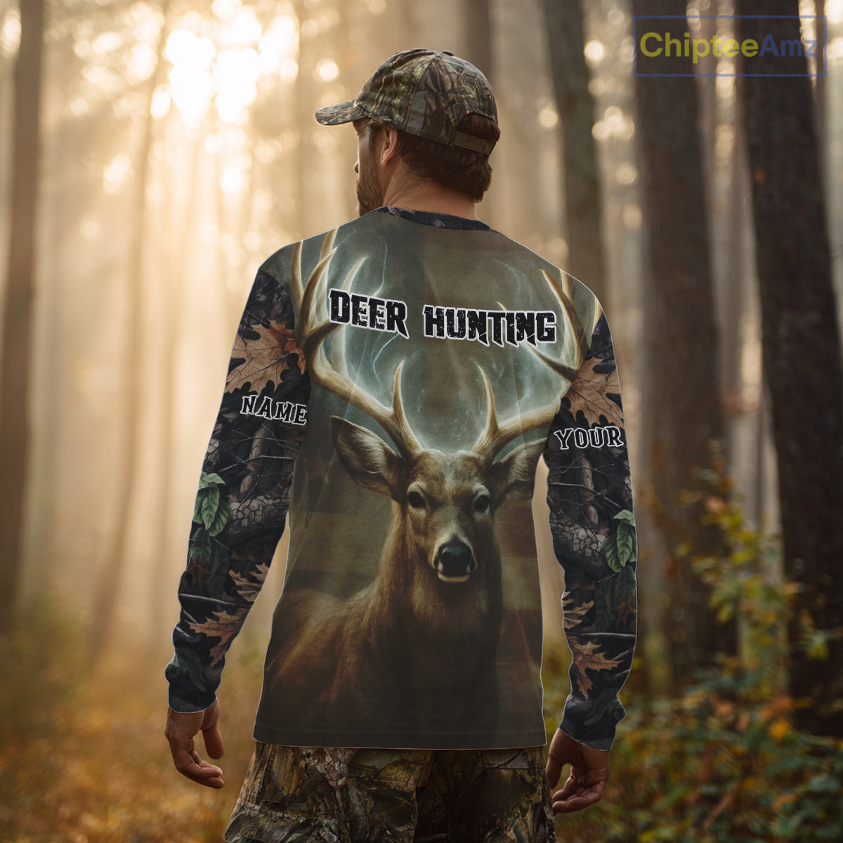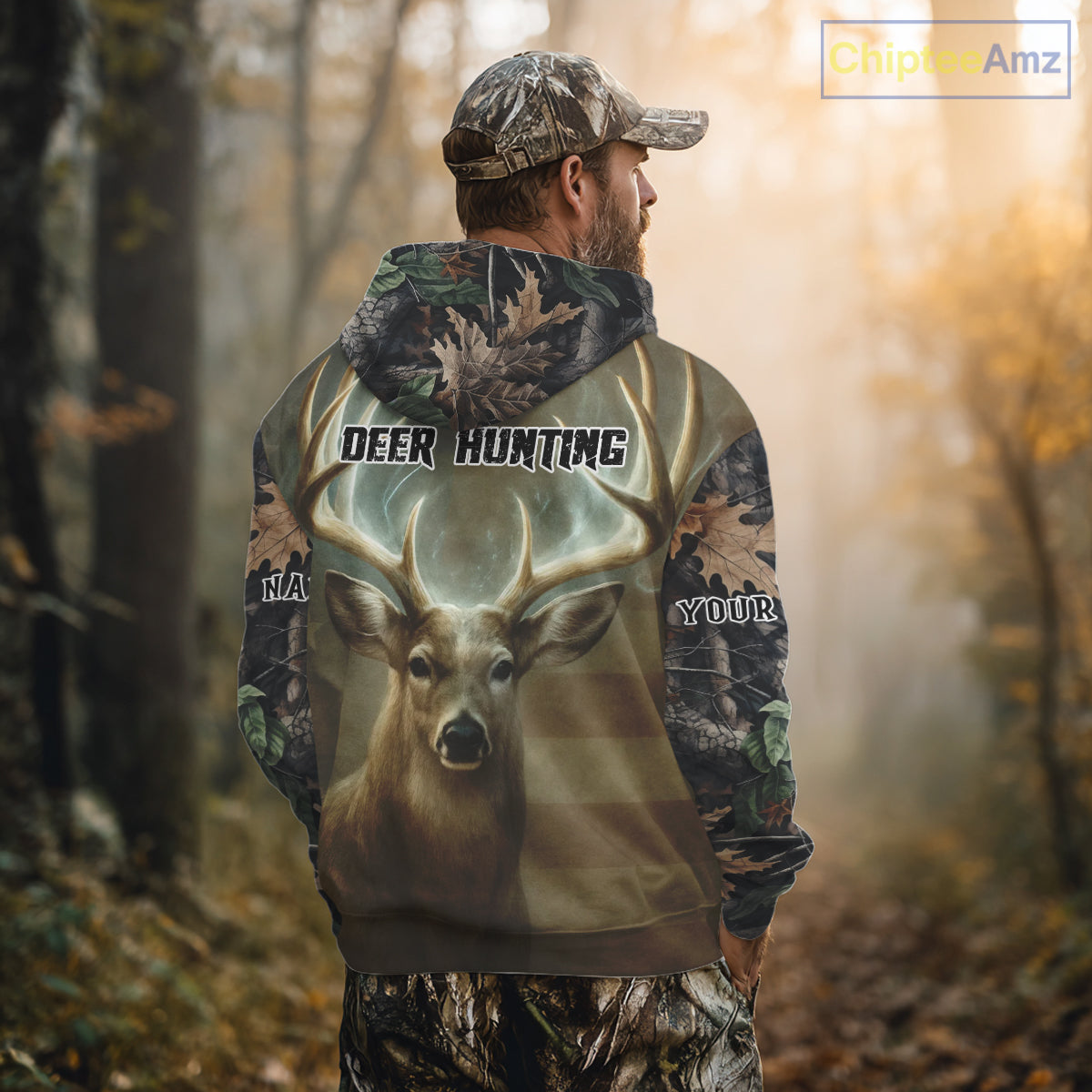 Deer Hunting American Flag Camo Hoodie, Long Sleeve Shirt – Buck Head Graphic NHT01
