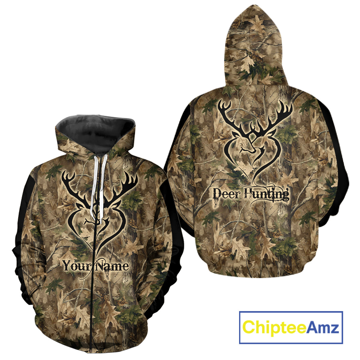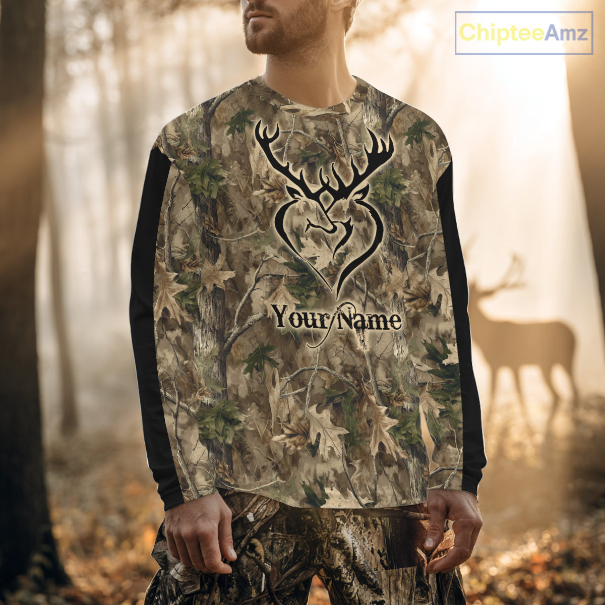 Deer Hunting Camouflage Customize Name 3D All Over Printed Shirts Hunting Outfits for Hunters NBT117