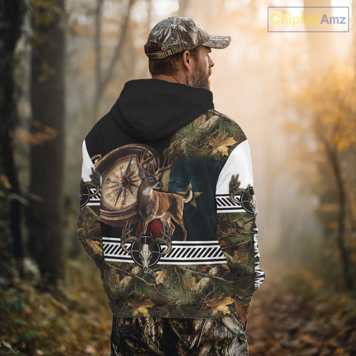 Deer Hunting Shirt Compass Design Forest Camo Custom Name Whitetail Deer Hunting Clothes NHT85