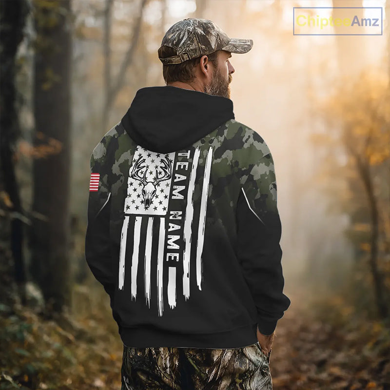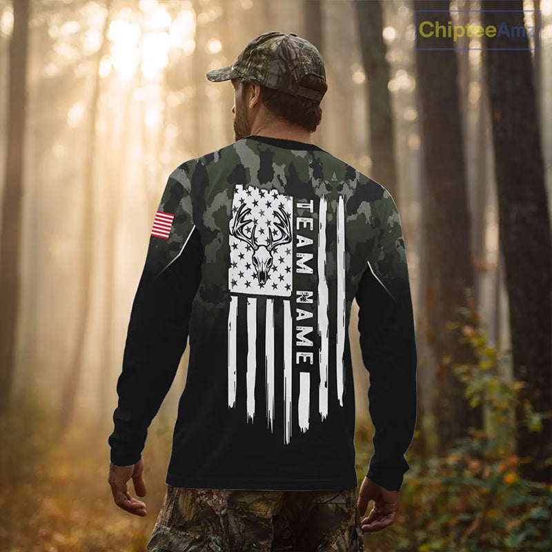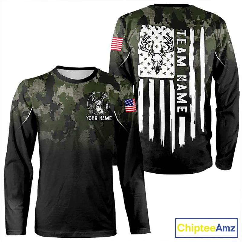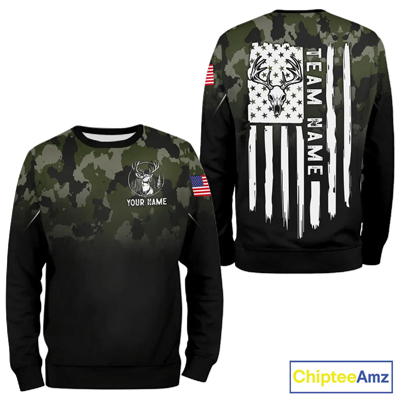 Black green camo American Flag Customize Name Patriotic Deer Hunting 3D All Over Printed Shirts NQS11360