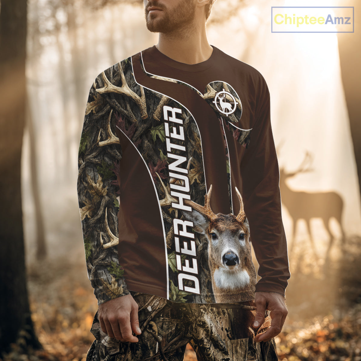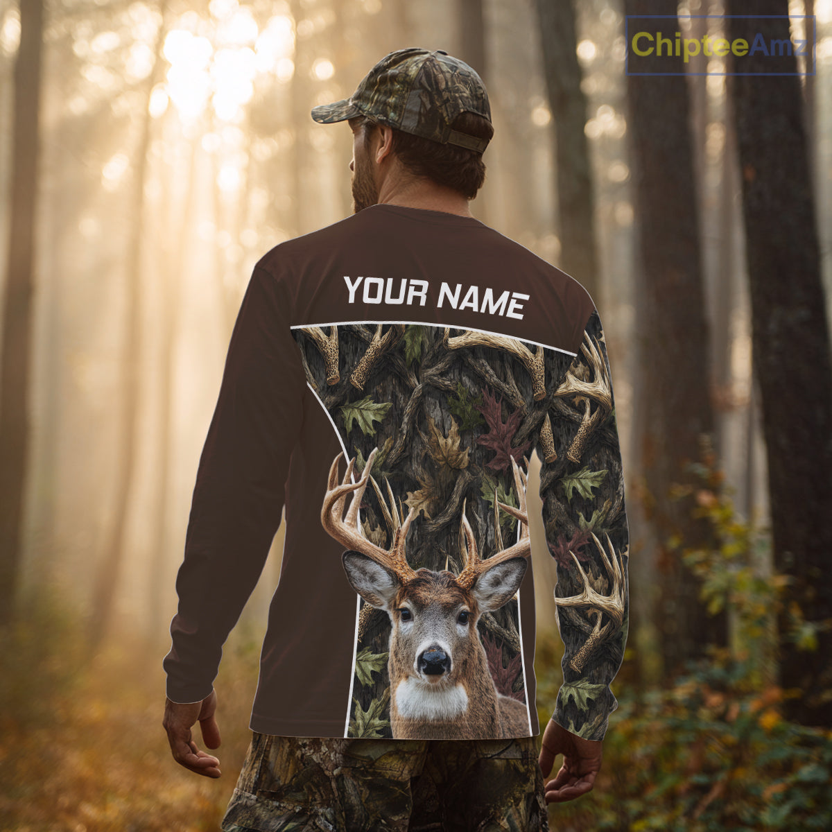 Brown Camo Deer Hunting Shirt, Deer Hunting Custom Name Camouflage Hunting Clothes NHT239