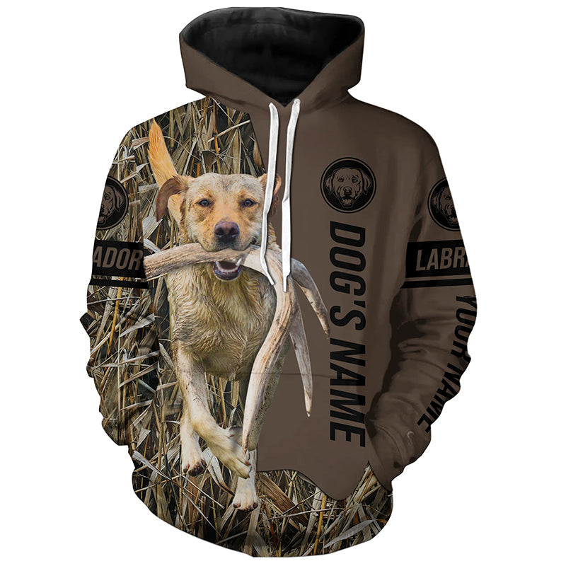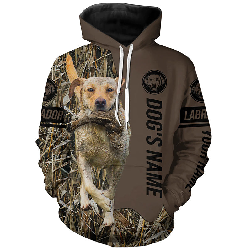 Yellow Labrador Retriever Hunting dog customized Name Shirt, camo and brown color FSD4670