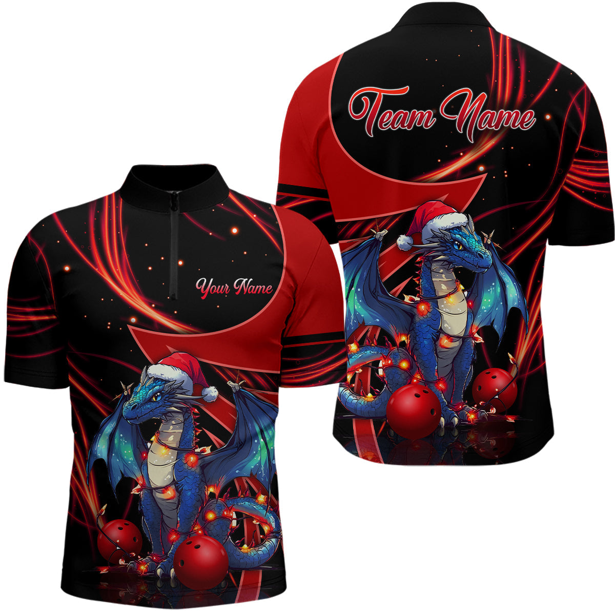 Black and Red Dragon Christmas Custom Bowling Shirt For Men Personalized Bowling Team Jerseys NQS8911