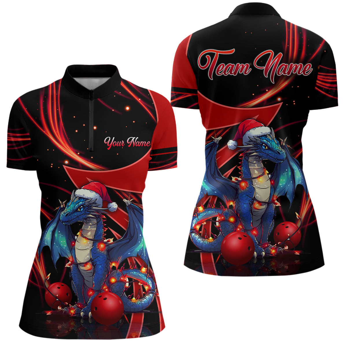 Black and Red Dragon Christmas Custom Bowling Shirt For Women Personalized Bowling Team Jerseys NQS8911
