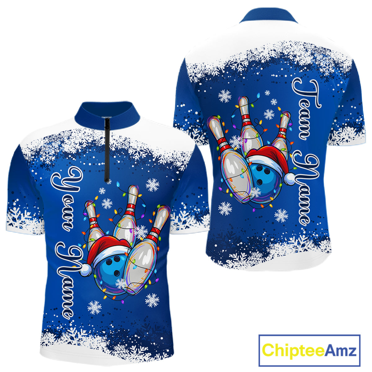 Blue and White snowflake Christmas Bowling Shirts For Men custom Xmas bowling team jersey with name NQS11026