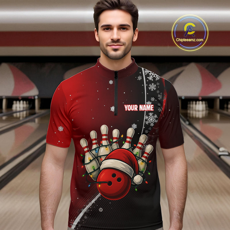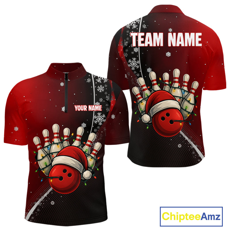 Custom Funny Christmas Bowling Shirts For Men, Black and Red Gradient Xmas Bowling Outfit Bowler Gift NQS10692
