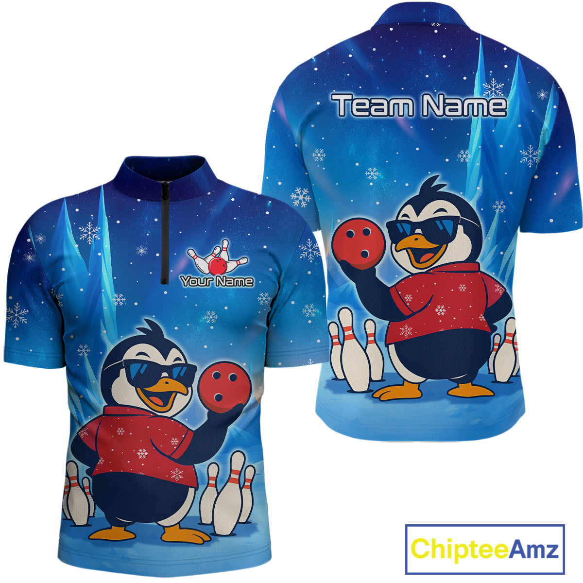 Funny Christmas Penguin Bowling Shirt for Men Custom Bowling Team Jersey Bowling Unisex QZT796