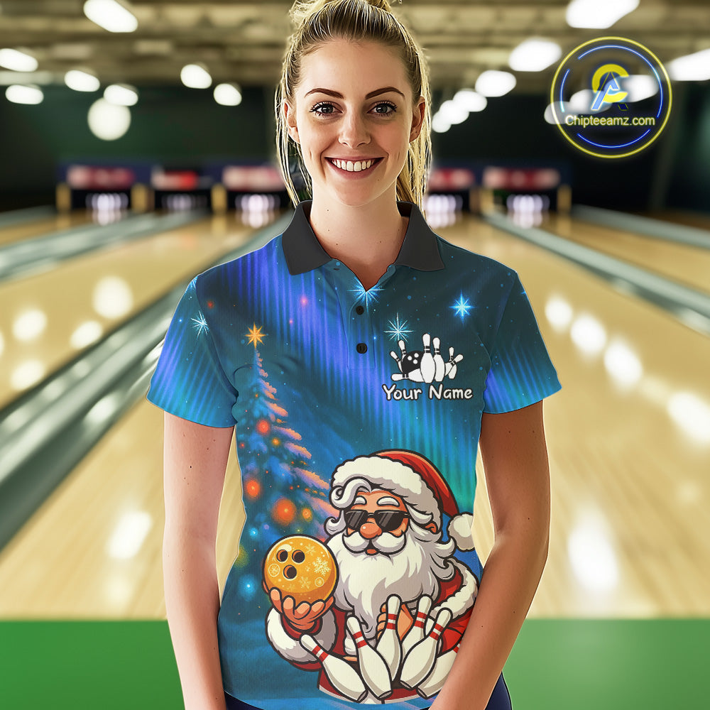 Funny Santa Christmas Bowling Shirts For Women Custom Blue Christmas Night Bowling Team Jersey NQS11010