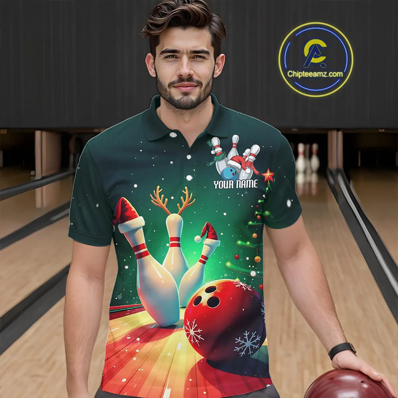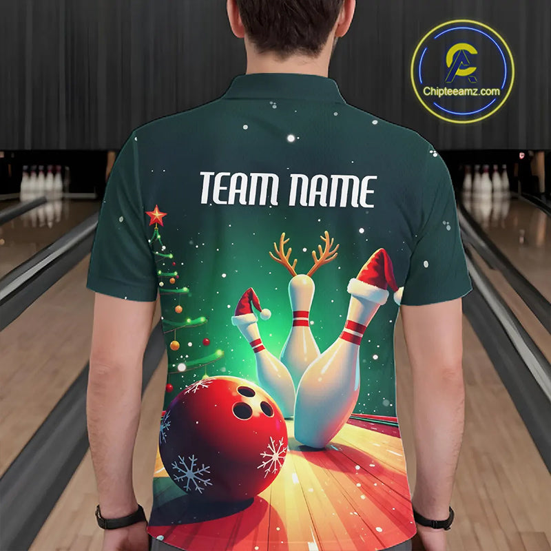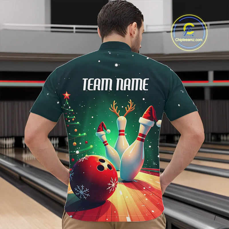 Custom Christmas Bowling Shirts For Men, Bowling Team Shirt Christmas Bowling Tournament Outfits IPHW7841