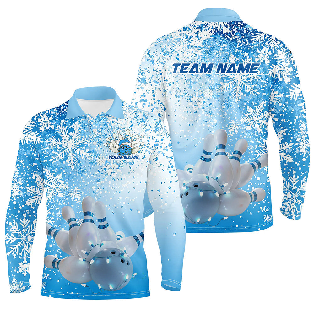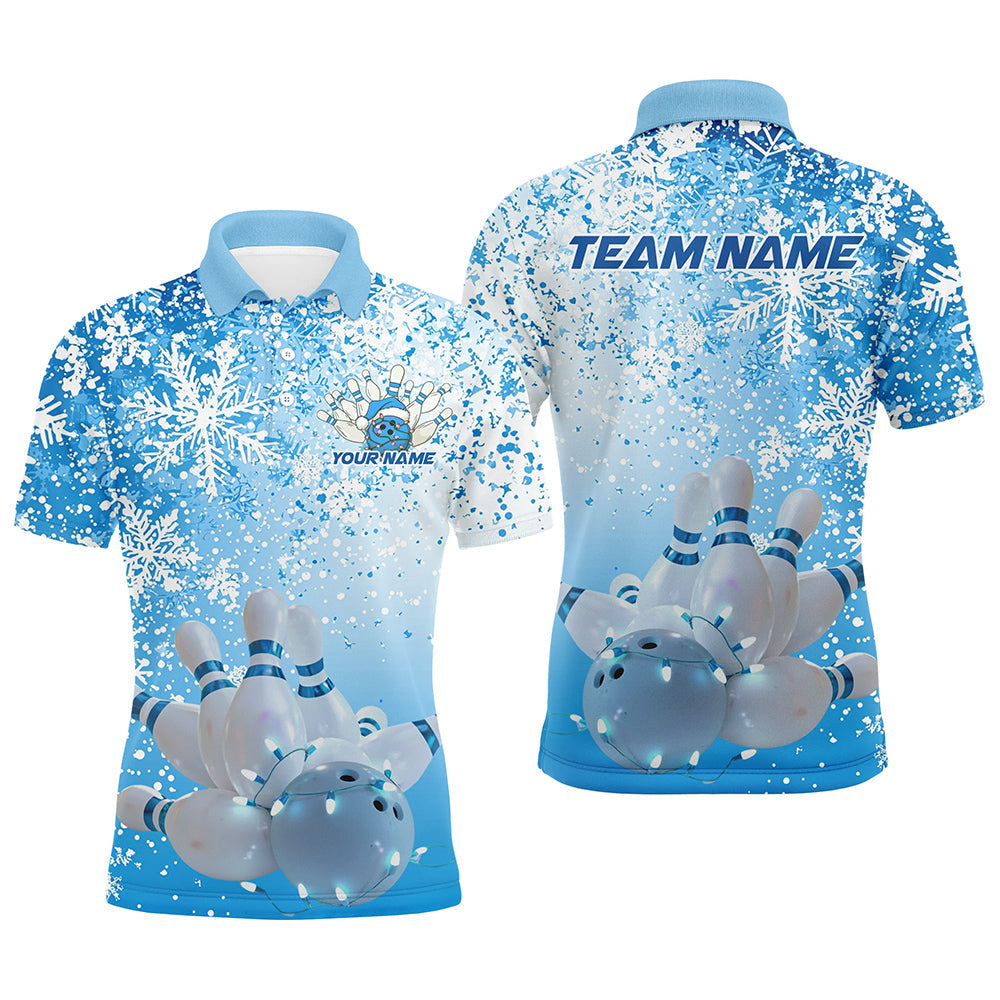 Blue Snowflake Custom Christmas Bowling Shirts For Men, Xmas Bowling Team Uniform Bowler Outfit IPHW7863