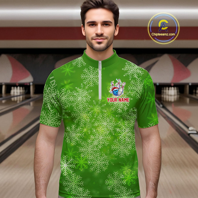 Personalized Funny Green Snowflake Christmas Bowling Team Shirts For Men, Christmas Bowling Gifts NQS10831