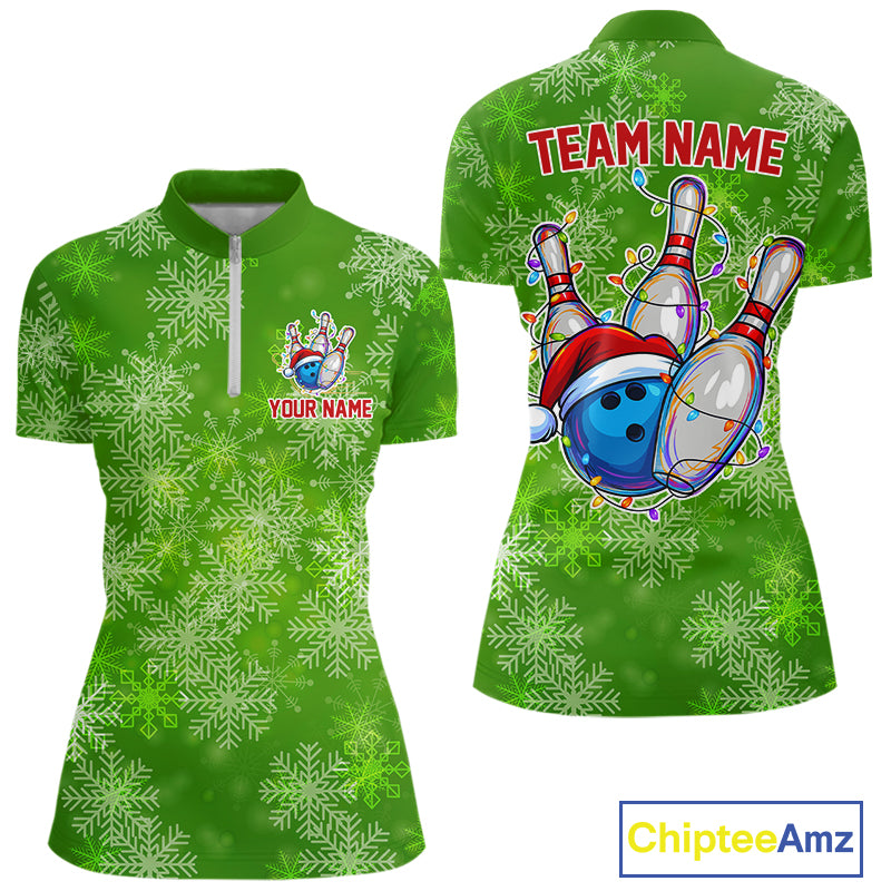 Personalized Funny Green Snowflake Christmas Bowling Team Shirts For Women, Christmas Bowling Gifts NQS10831