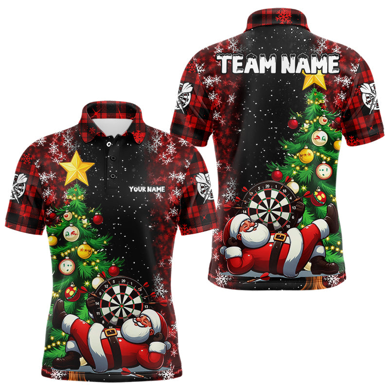 Black And Red Funny Santa Christmas Dart Shirts For Men Custom Christmas Pine Tree Xmas Dart Outfit TDM3130
