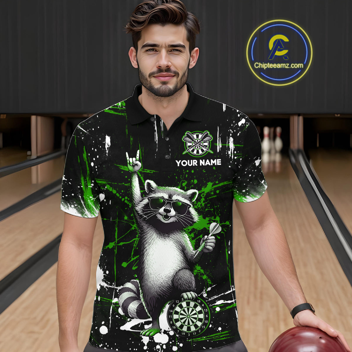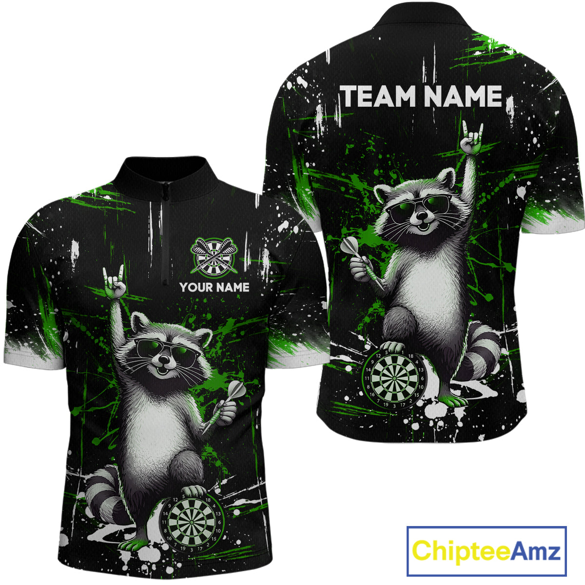 Custom Green Funny Raccoon Dart Team Shirt for Men Dart Jersey Polo & /4-Zip Dartboard Shirt Outfit DHT29