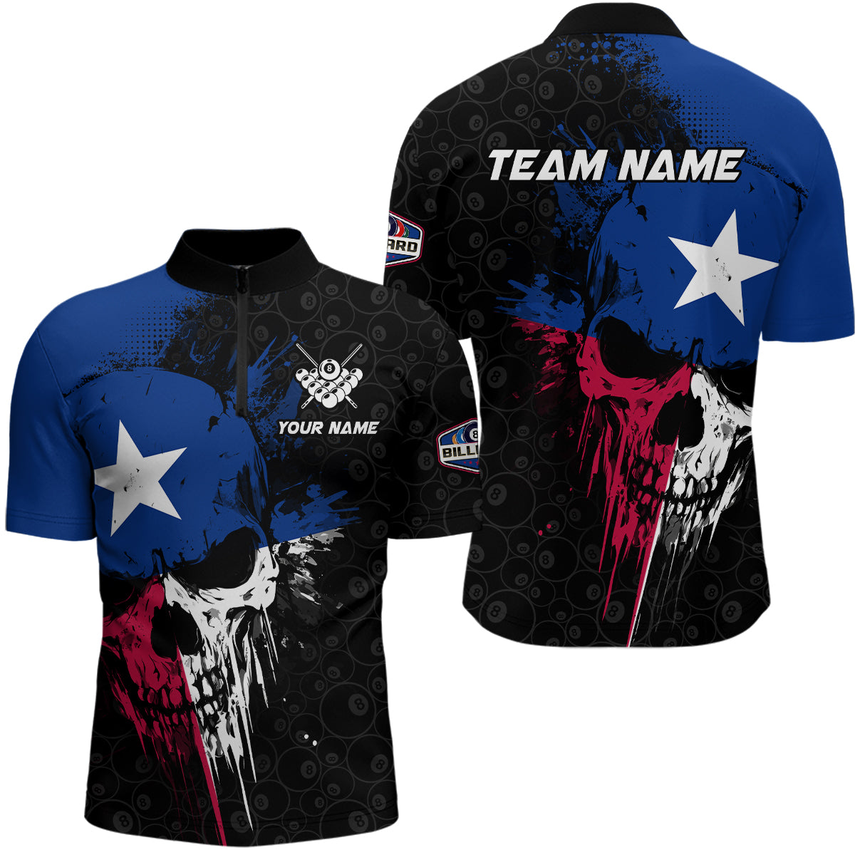 Texas Flag Grunge Skull 8 Ball Pattern Billiard Shirts For Men Custom Patriotic Billiard Jerseys TDM3205