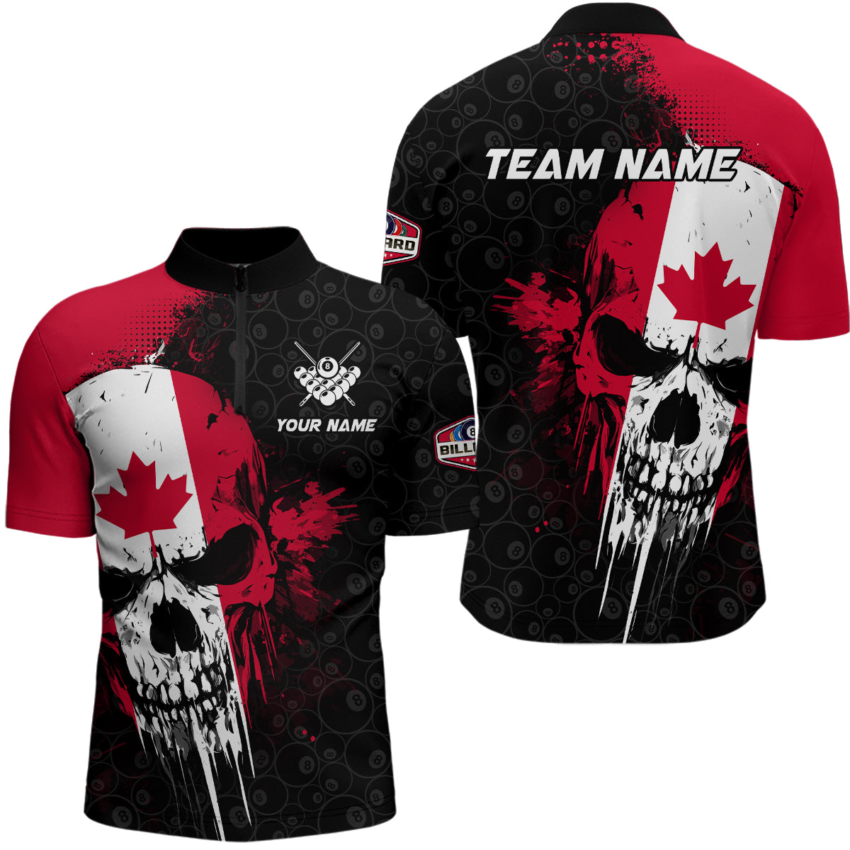 Canada Flag Grunge Skull 8 Ball Pattern Billiard Shirts For Men Custom Patriotic Billiard Jerseys TDM3207
