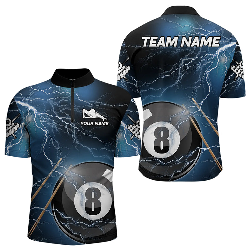 Black And Blue Thunder Lightning Custom 8 Ball Pool Billiard Shirts For Men, Billiard Pool Jerseys TDM3280