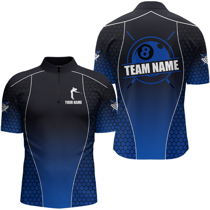 Black And Blue Billiard Polo, Quarter Zip For Men Custom Billiard Jersey 8 Ball Billiard Team Shirt TDM3307