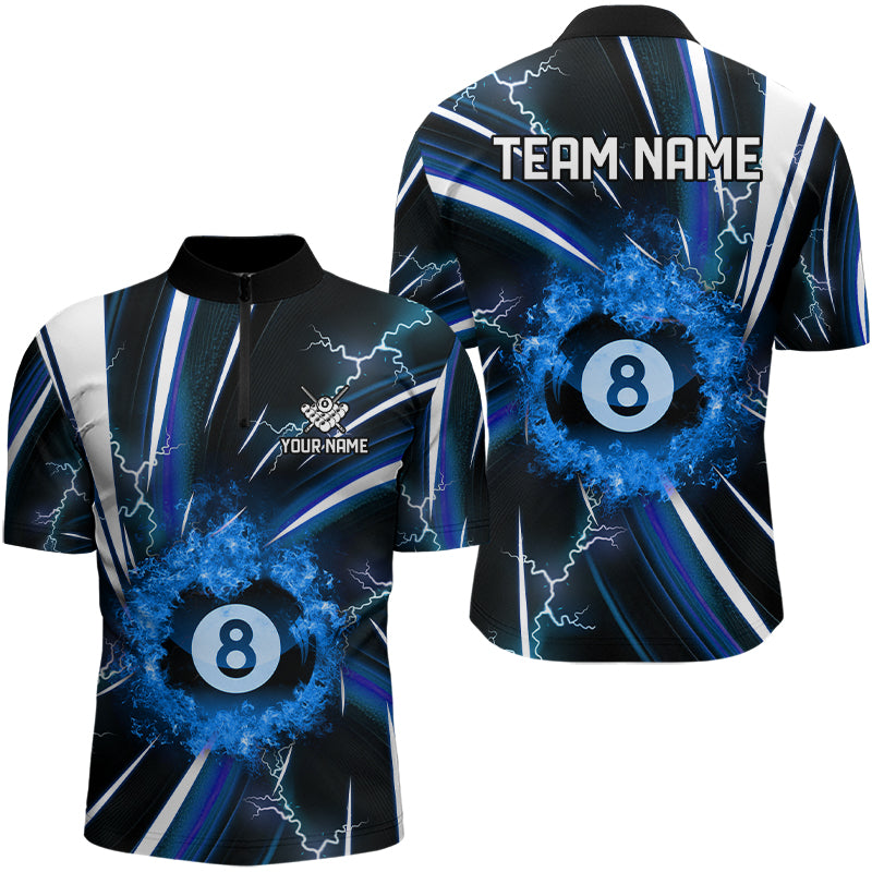 Personalized Blue 8 Ball Pool Fire Men Billiard Shirt Custom Thunder Lightning Billiard Team Jersey TDM3348