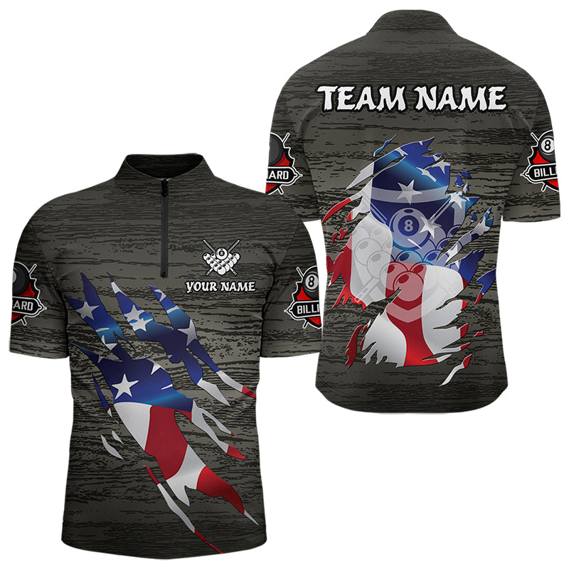 Personalized Grey Grunge American Flag Billiard Shirts For Men Custom Patriotic Billiard Jerseys TDM3379