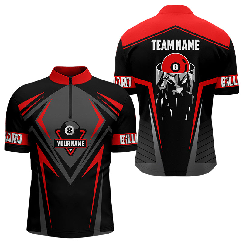 Black And Red 8 Ball Pool Billiard Jerseys For Men Custom Polo & Quarter Zip Billiard Team Shirts TDM3387