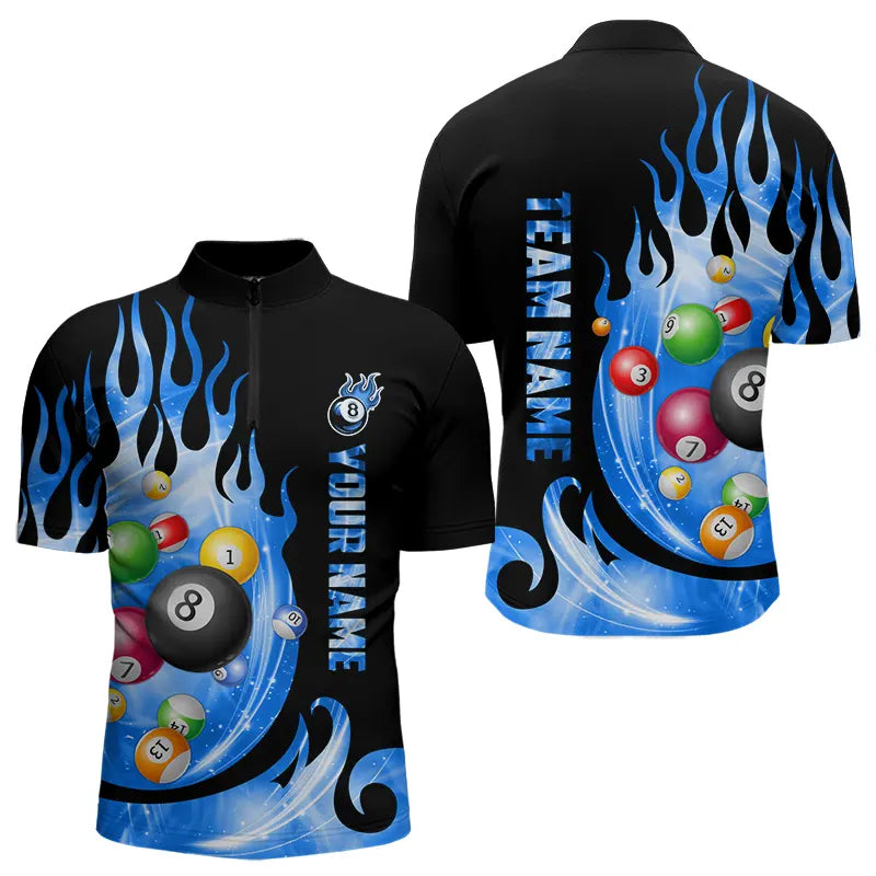 Custom Black Blue Fire Flame Light Pool Balls Billiard Shirts For Men Team League Billiard Jerseys TDM3423
