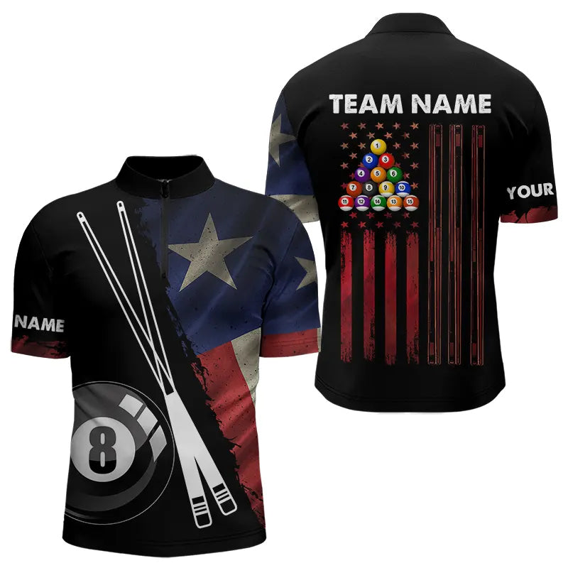 Retro Grunge Texas Flag 8 Ball Pool Billiard Shirt For Men Custom Patriotic Billiard Team Jersey TDM3429
