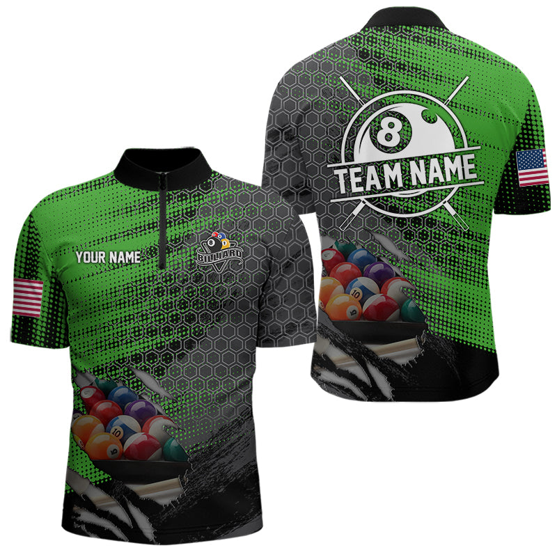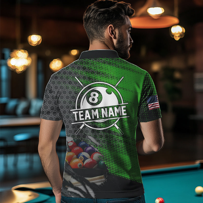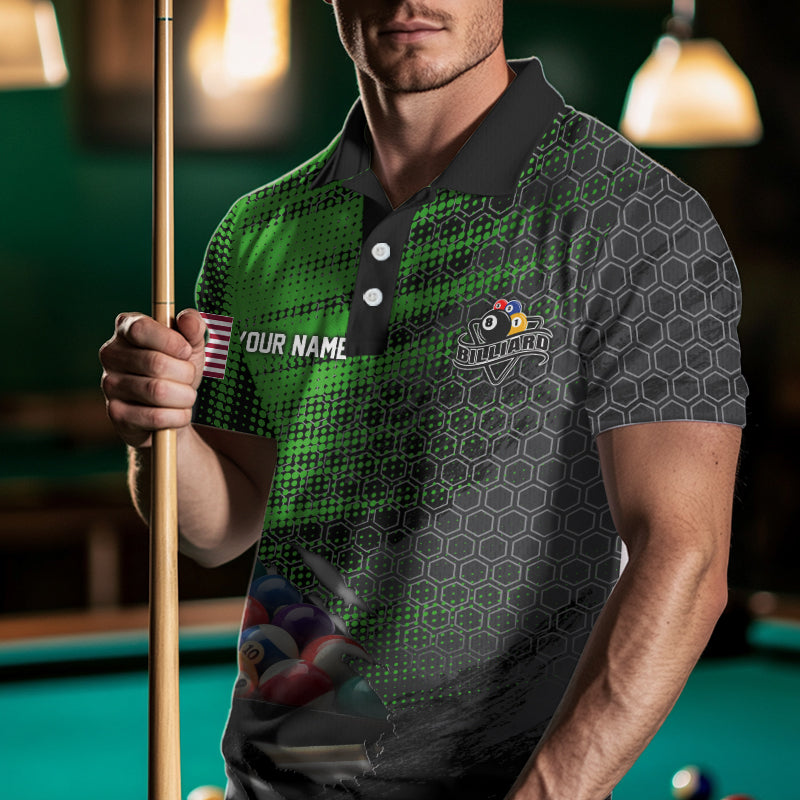 Green And Black Billiard Polo & Quarter-Zip Shirts For Men Custom Billiard Team Shirts Pool Jerseys TDM3474