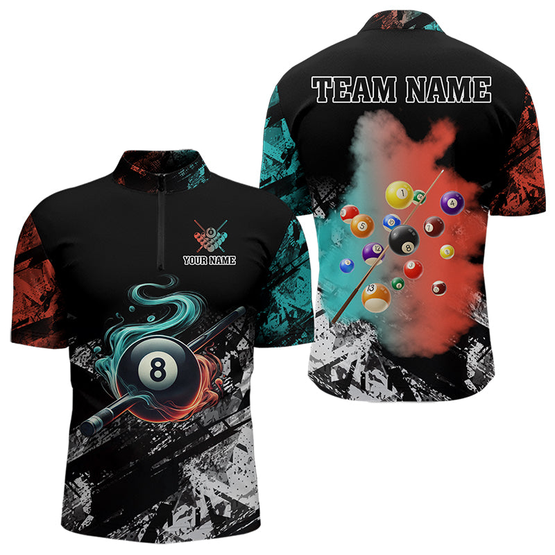 Personalized Orange And Turquoise 8 Ball Pool Smoke Billiard Shirts For Men Custom Billiard Jersey TDM3475
