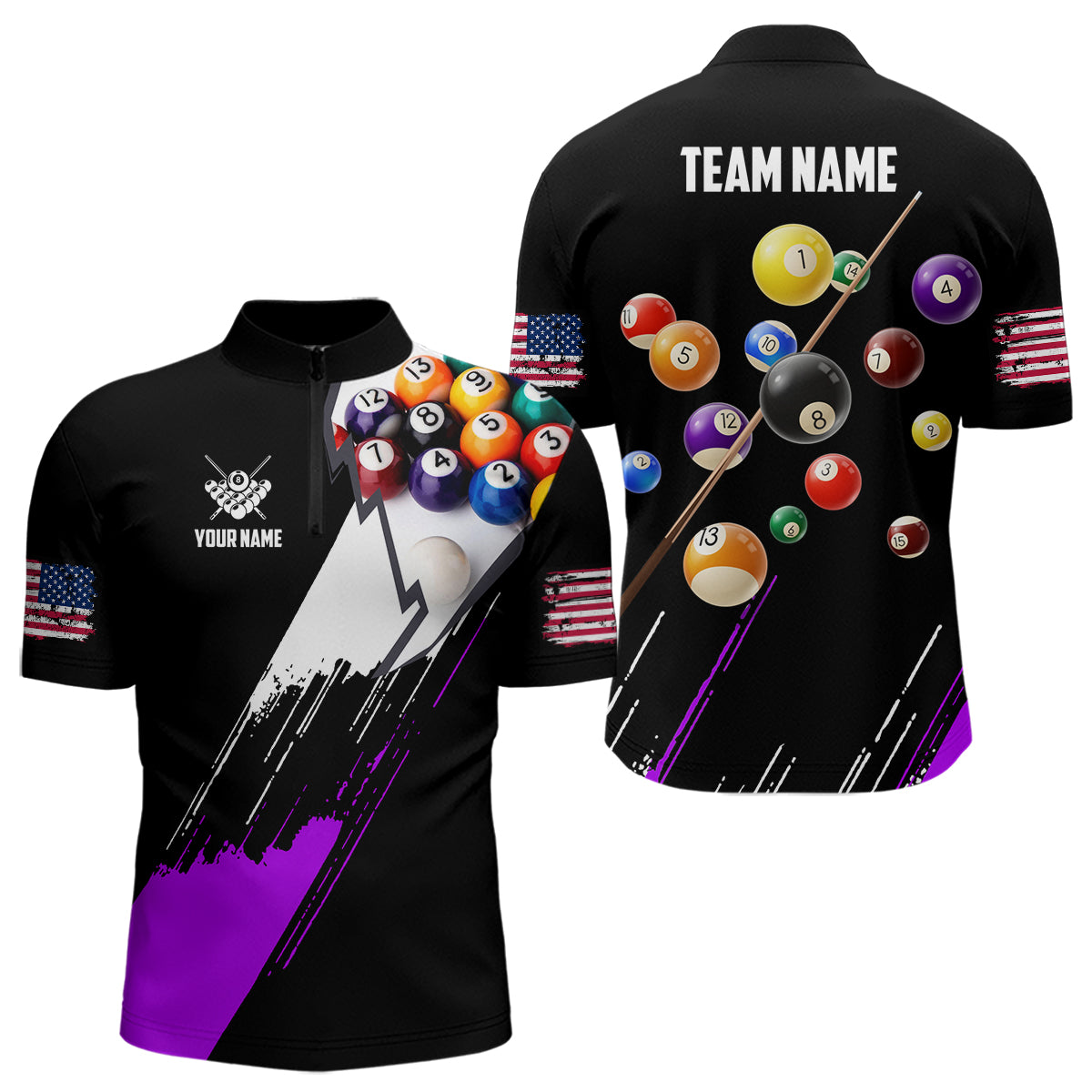 Personalized Black Purple 3D Pool Balls Billiard Shirts For Men Custom Team 8 Ball Billiard Jerseys TDM3576