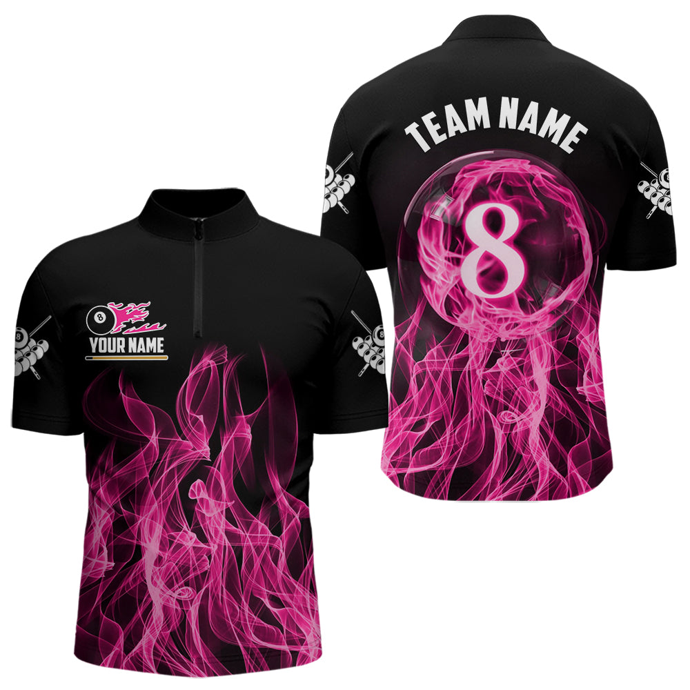 3D Pink Flaming 8 Ball Pool Men Billiard Polo & 1/4 Zip Shirt Custom Pool Player Billiard Jersey TDM3616