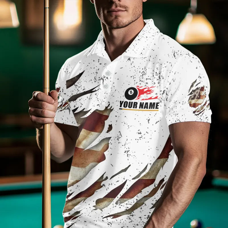 Billiard Ball Retro US Flag White Grunge Billiard Shirt For Men Custom 8 Ball Pool Billiard Jersey TDM3636