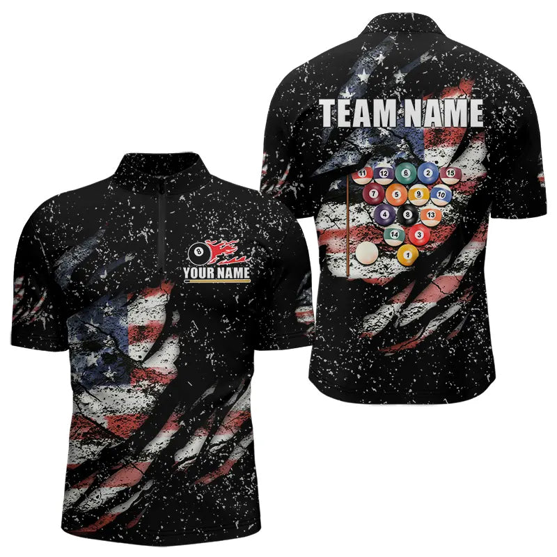 Billiard Balls US Flag Black Grunge Billiard Shirts For Men Custom 8 Ball Pool Billiard Jerseys TDM3638