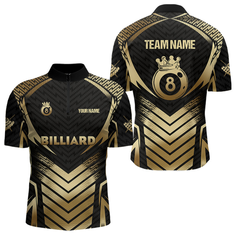 Customized 8 Ball Pool Crown Men Billiard Shirts, Gold And Black Billiard Team Shirts Pool Jerseys TDM3688