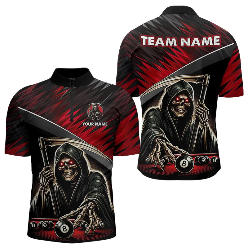 Red Grim Reaper 8 Ball Pool Billiard Shirts For Men Custom Billiard Team Jerseys Polo & 1/4 Zip TDM3760
