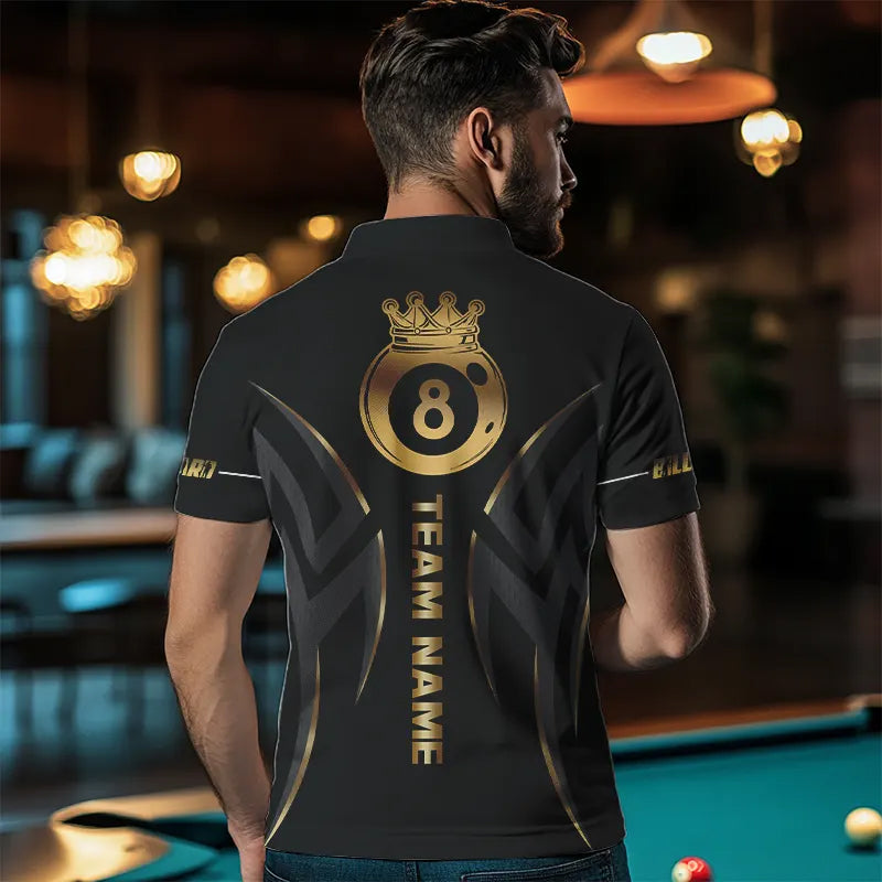 Customized 8 Ball Pool Crown Men Billiard Shirts, Gold And Black Billiard Team Shirt Pool Jerseys TDM3769
