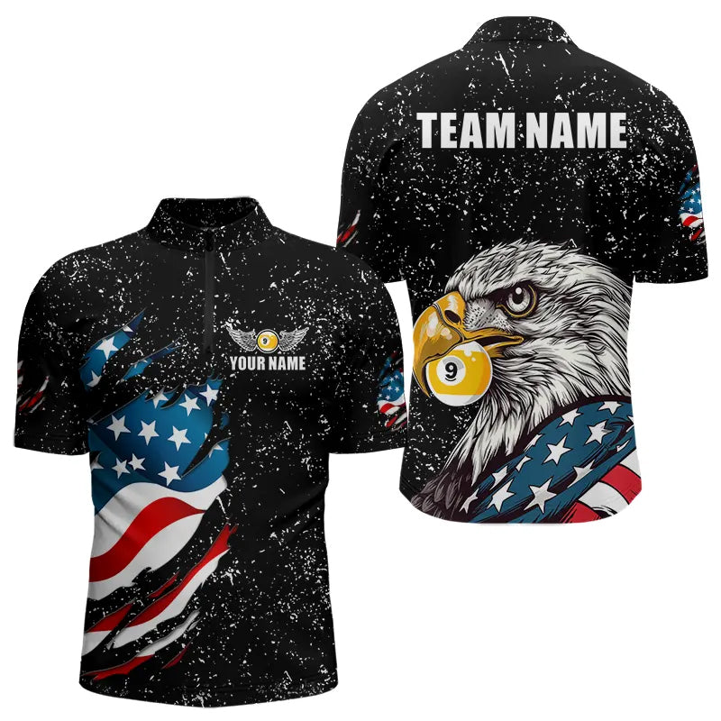 Black Grunge Eagle American Flag Custom 9 Ball Pool Men's Billiard Shirts, Billiard Team Jerseys TDM3779