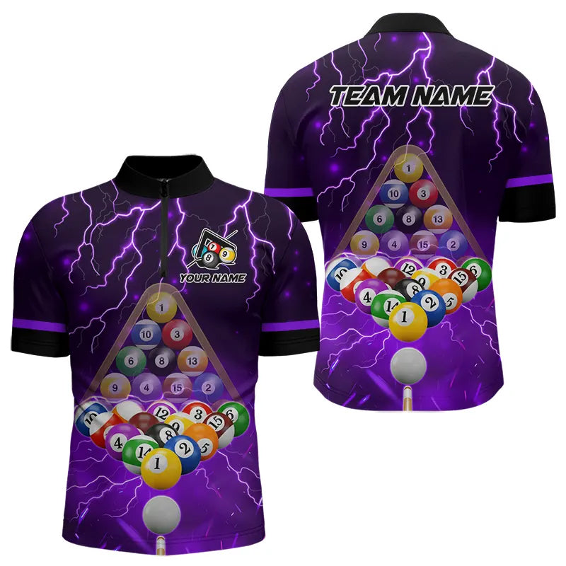 Thunder Lightning Storm Custom 3D Billiard Shirts For Men, Billiard Balls Team Jerseys |Purple TDM3817