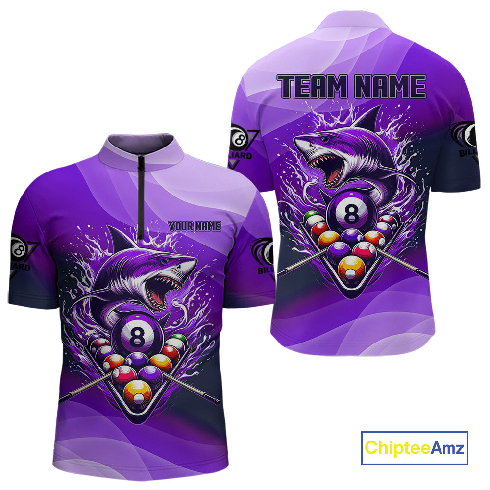 Personalized Purple Pool Ball Shark Billiard Shirts For Men Custom Team League Billiard Jerseys TDM3842
