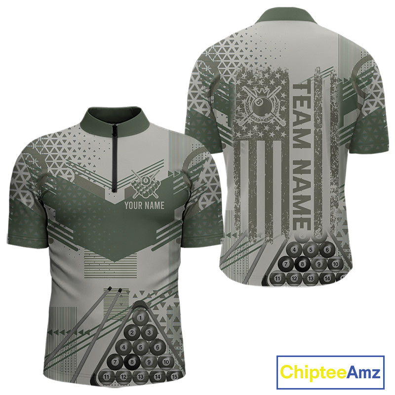 Military Green Camo Billiard Jersey For Men Custom 8 Ball Pool Shirt American Flag Billiard Shirts TDM3855
