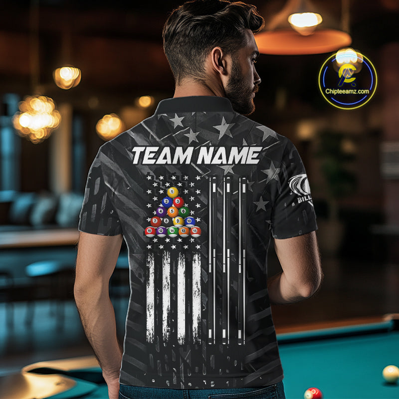 Black US Flag 8 Ball Billiard Shirts For Men Custom Patriotic Billiard Team Shirts, Pool Jerseys TDM4084